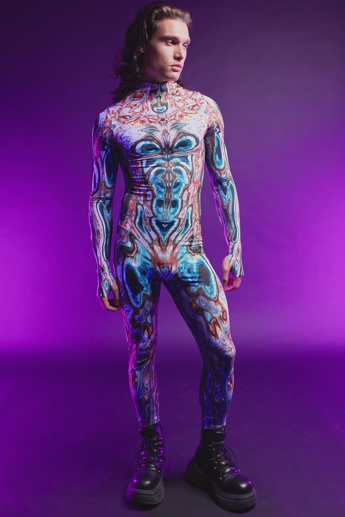 Unleash your inner extraterrestrial in the Alien Morphology men’s costume. This second-skin full body suit features a otherworldly design and a sleek front zipper for that easy slip-in, slip-out vibe. Bold colors and a futuristic pattern bring the alien to life, making u feel like you're in control of every room u step into. Step into the unknown and own it.