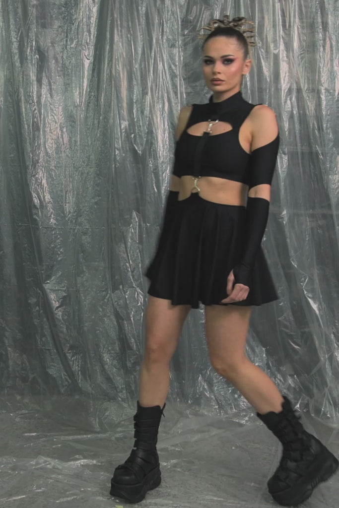 Black Cut Out 2 Piece Dress with Rings