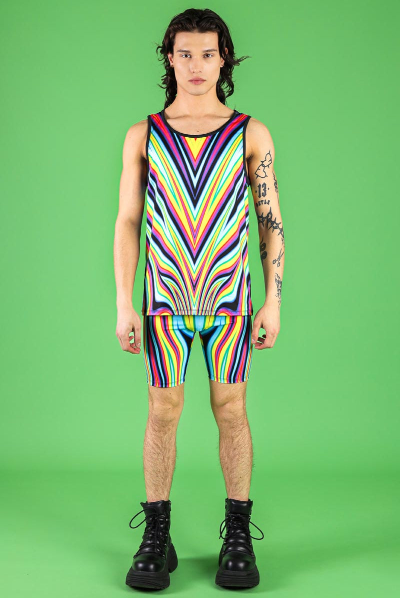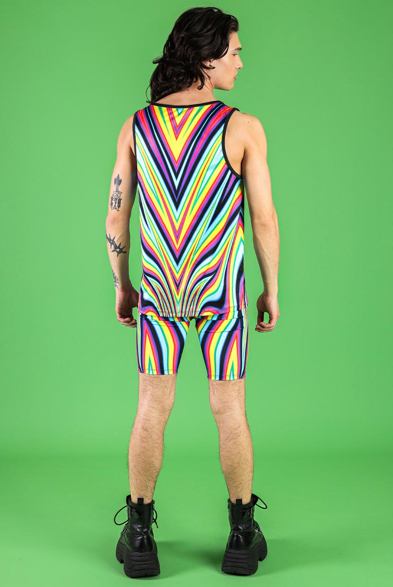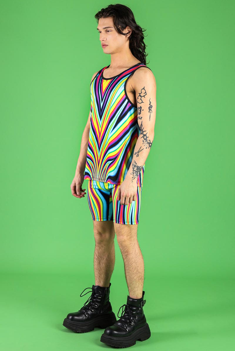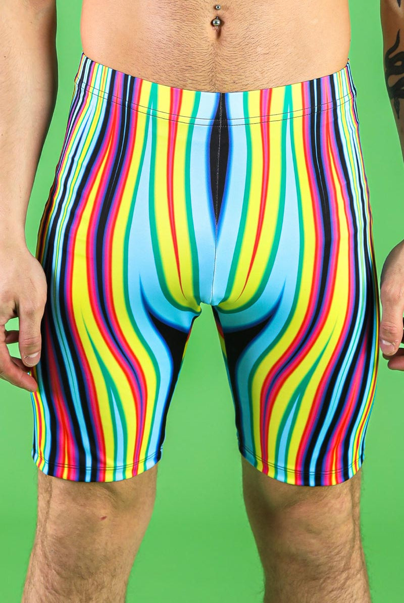 Add a burst of color to your wardrobe with these men's biker shorts, showcasing the eye-catching Chroma Rebel pattern. Designed for a snug yet comfortable fit, these shorts feature a waistband that ensures they stay in place no matter how active you are. The stretchy material allows for full range of motion, making them perfect for dancing, exercising, or simply making a statement at any event.