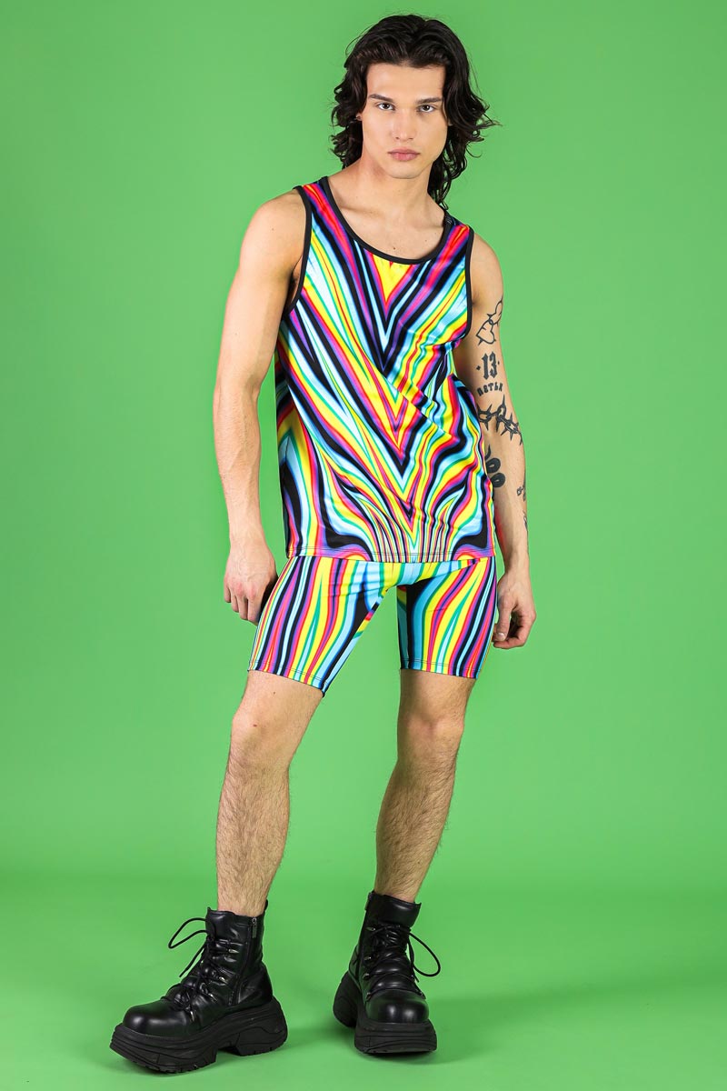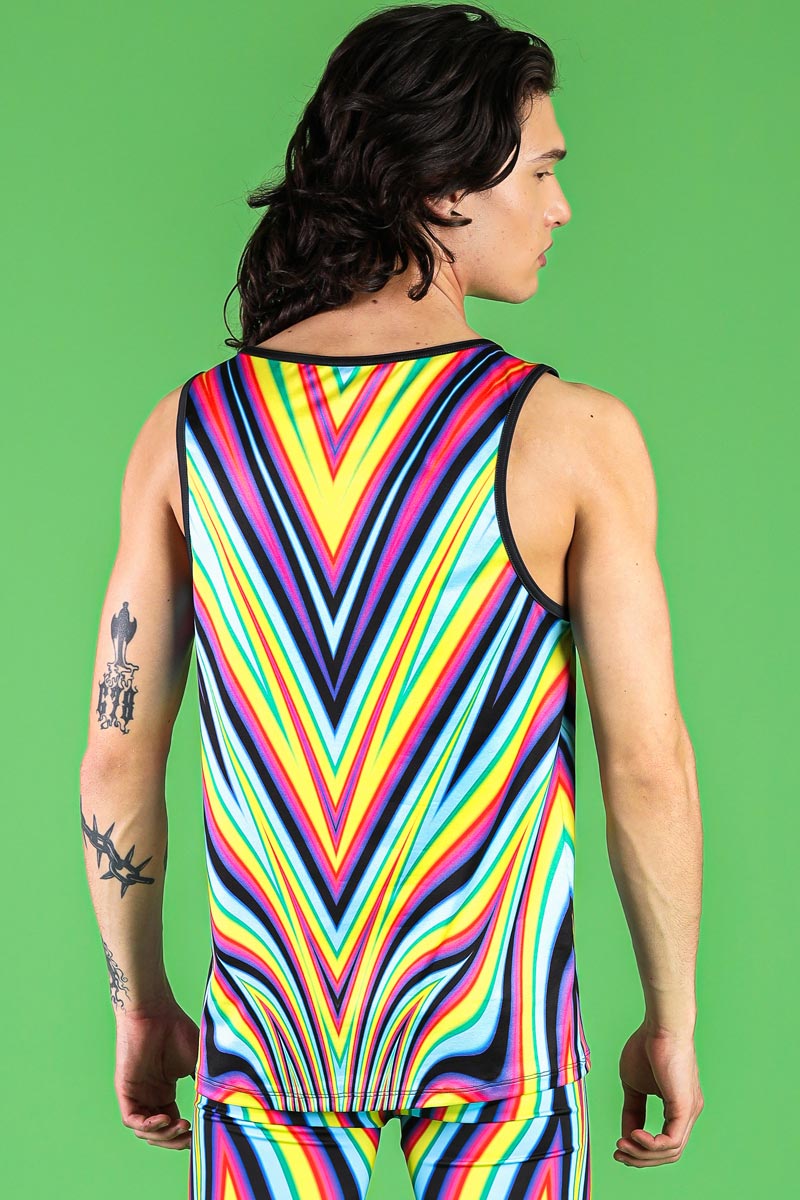 Step into bold fashion with this men's tank top featuring the Chroma Rebel pattern. This sleeveless top is designed for maximum comfort and mobility, making it ideal for any vibrant occasion. The scoop neckline adds a classic touch, while the lightweight fabric ensures you stay cool and stylish. Perfect for pride events, raves, and festivals, this tank top brings a splash of color and energy to your outfit.