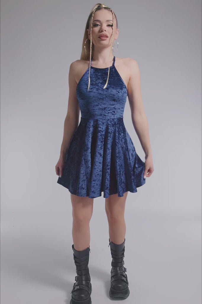 Cosmic Indigo Open Back Skater Dress - Blue Velvet