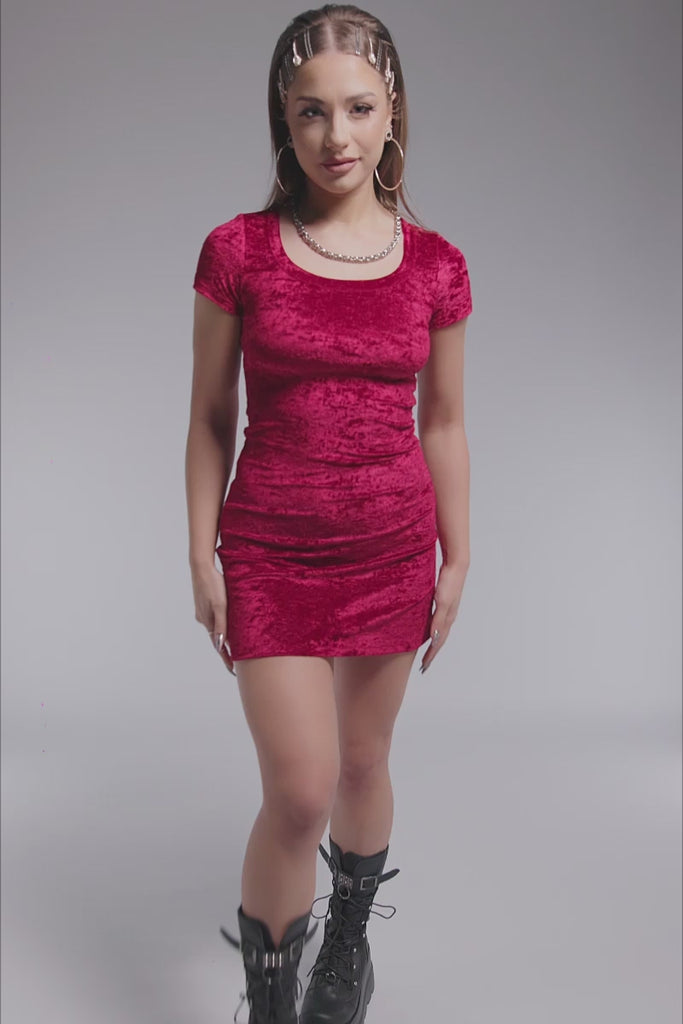 Turn heads in this red velvet bodycon dress that radiates boldness. The plush velvet fabric hugs your curves while the short sleeves and scoop neckline bring effortless elegance to your look. Perfect for festivals or night-outs, this dress lets you step into your confidence and own the spotlight.