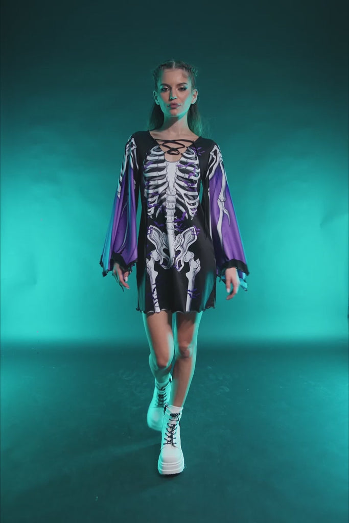 Darkwing Skeleton Bell Sleeve Dress