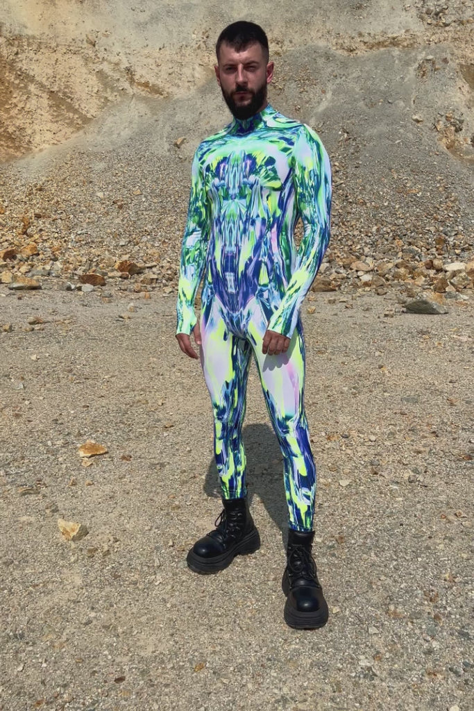 Glimmer ur core out in this trance-starting printed costume, designed to give u the spotlight! It has an all-over hypno neon print with electrically psychedelic patterns and a curve-hugging layout that looks like a second layer of skin. So, it's time to let the show begin!