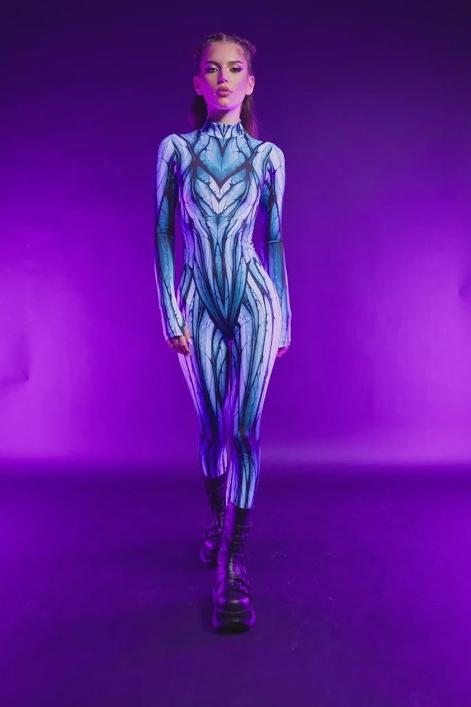 Step into the shadows with the Eternal Vampire costume. This fierce full-body for women glows under UV light, creating a mesmerizing aura wherever u go. The sleek, form-fitting design with a high neckline, and bold, cold hues ensure you're the center of attention. Ready to slay the night? Cuz this edgy, rebellious outfit is here to make sure u do!