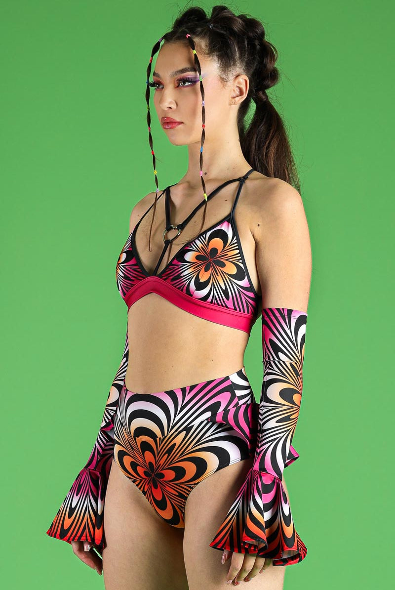 These ruffled shorts, featuring the Femme Power print, are your new go-to for adding a playful touch to your outfit. The vibrant pattern and flouncy ruffles merge to create a piece that’s as fun as it is functional, offering both coverage and style. Perfect for those looking to add a dash of whimsy to their festival or beach attire.