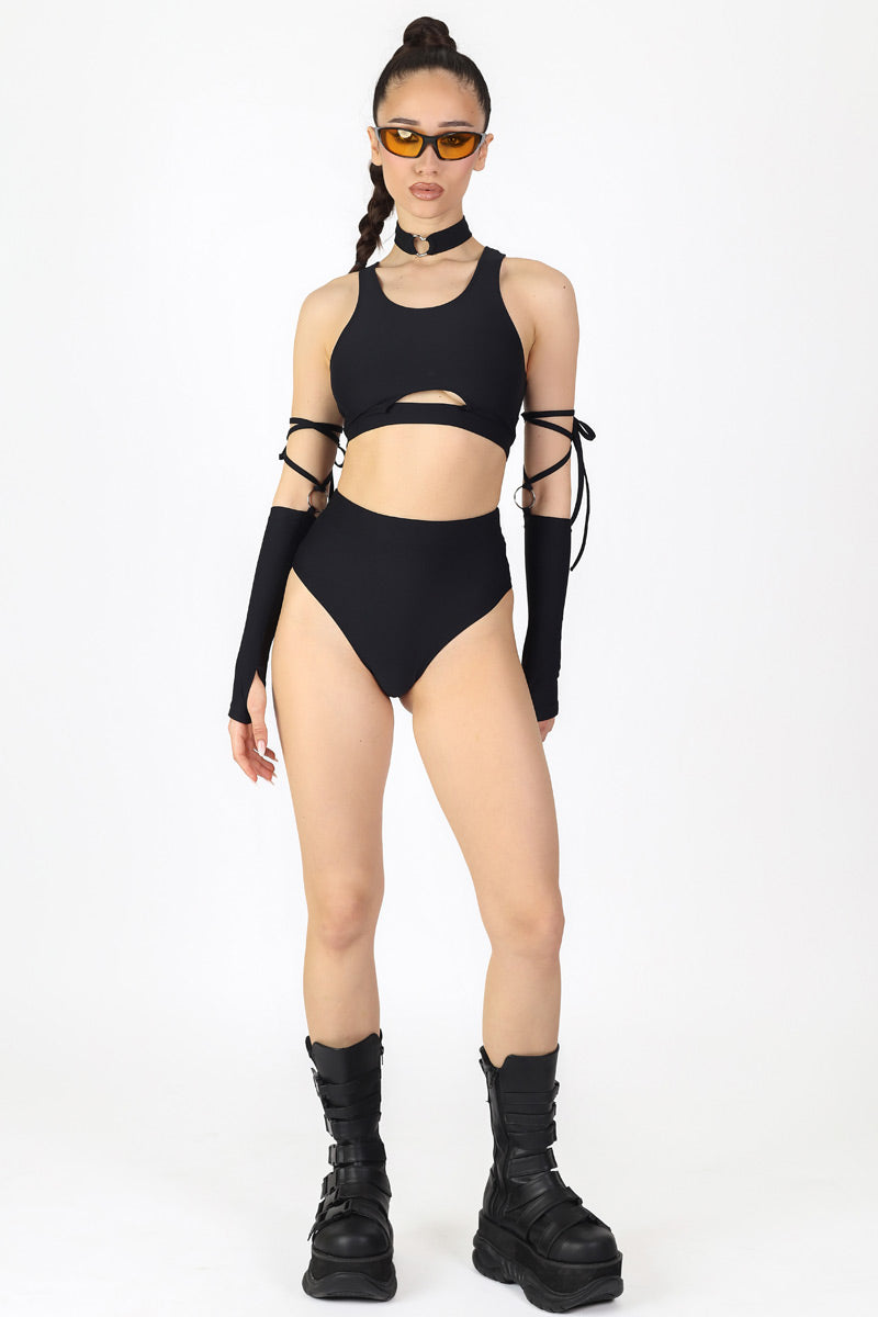 These full black booty shorts boast a classic, high-rise silhouette, providing a snug and flattering fit. The sleek design accentuates the form, while the stretch-infused fabric ensures comfort and flexibility, making them a versatile staple for any wardrobe.