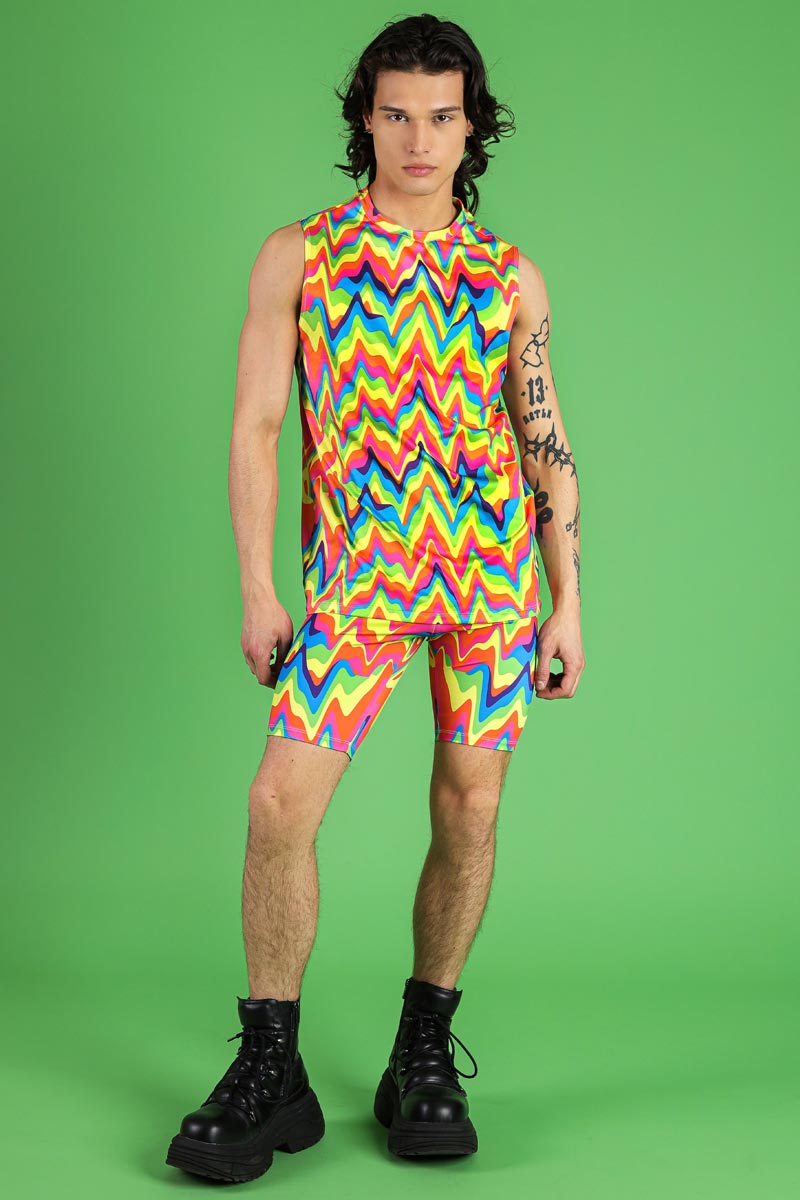 Step into the spotlight with our men's sleeveless shirt, showcasing the vibrant Groovy Rainbow pattern. Crafted for ultimate comfort and style, this sleeveless top features a relaxed fit and a classic crew neckline. Perfect for layering or wearing solo, it’s designed to keep you cool while making a bold statement. Ideal for pride events, raves, or any festival where you want to stand out, this piece brings a splash of color and a dose of fun to your wardrobe.