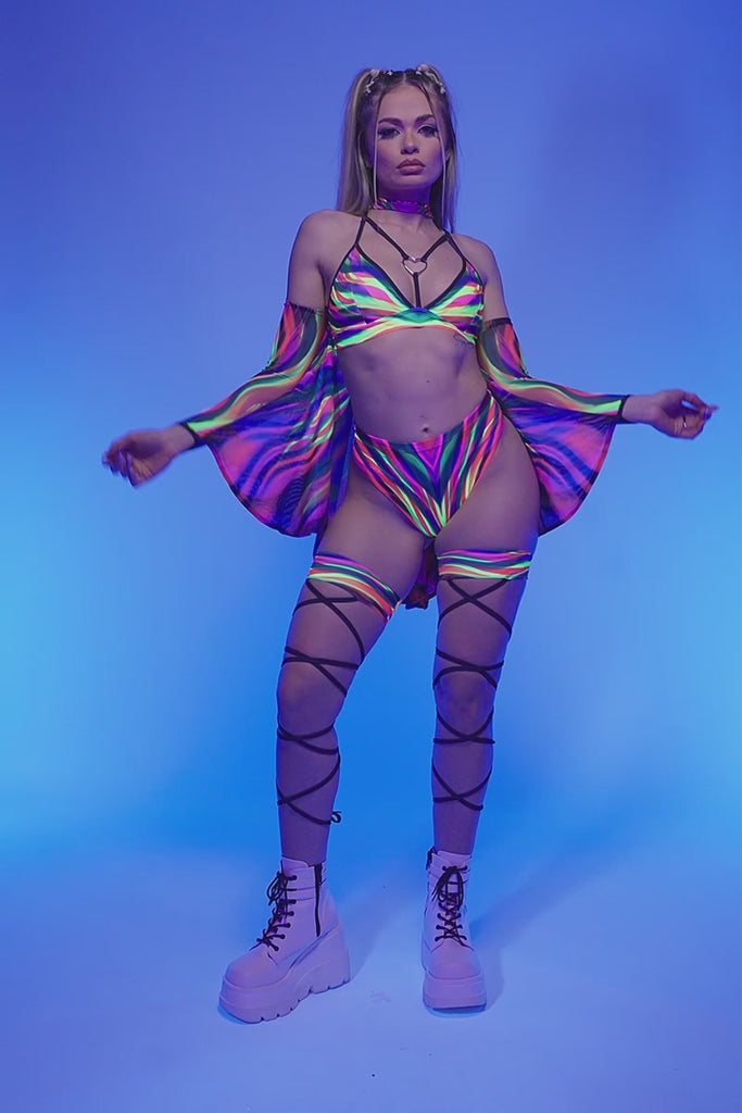 Unleash electric energy in these ultra-flowy butterfly wings, designed to move with every beat of the bass. Whether you’re lighting up the night at a rave or fluttering through a festival, these wings transform your whole vibe into something fierce, fearless, and totally unforgettable. Spread your wings and slay.