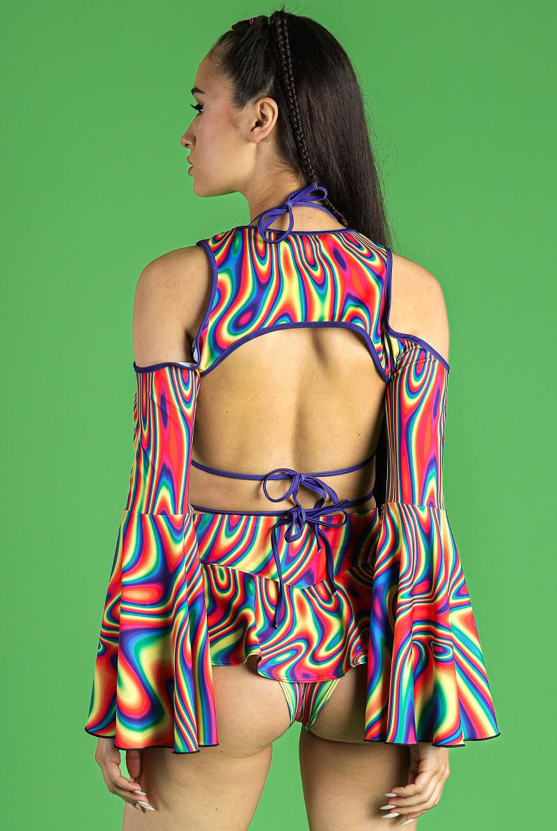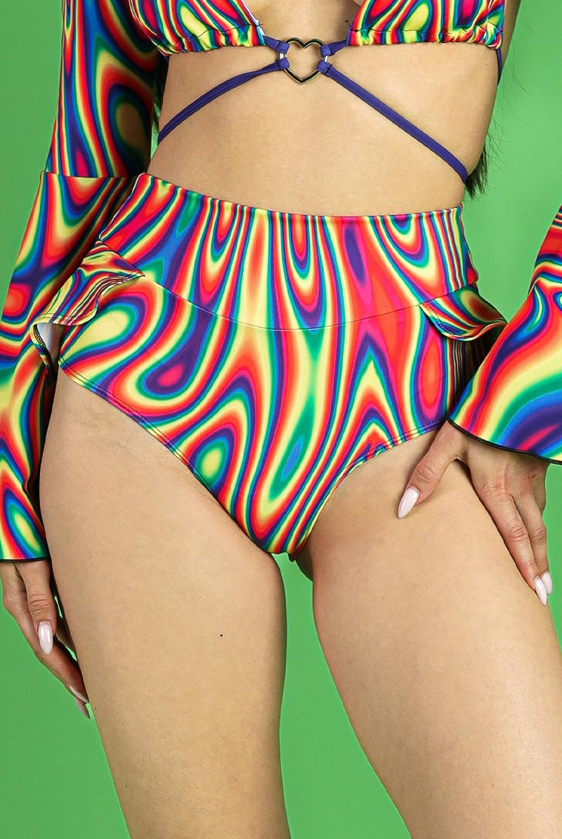 Add a playful touch to your wardrobe with these ruffled mini skirt shorts with Infinite passion print. The shorts combine the flirtatious fun of ruffles with the comfort and practicality of shorts, all while showcasing a psychedelic swirl of colors that demand attention. Whether you're at a festival or a fun outing, these shorts are designed to make a stylish statement.