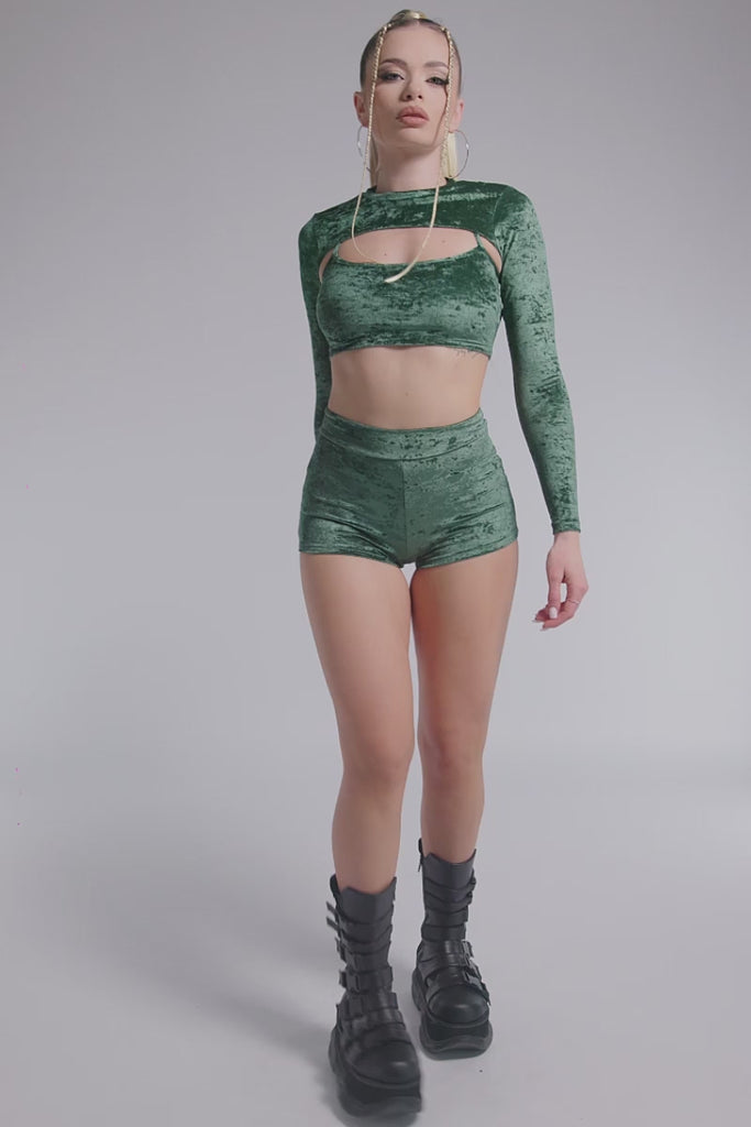 Moss Babe High Rise Booty Shorts - Green Velvet