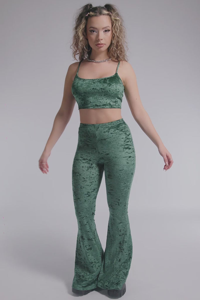 Moss Babe Spaghetti Strap Crop Top - Green Velvet