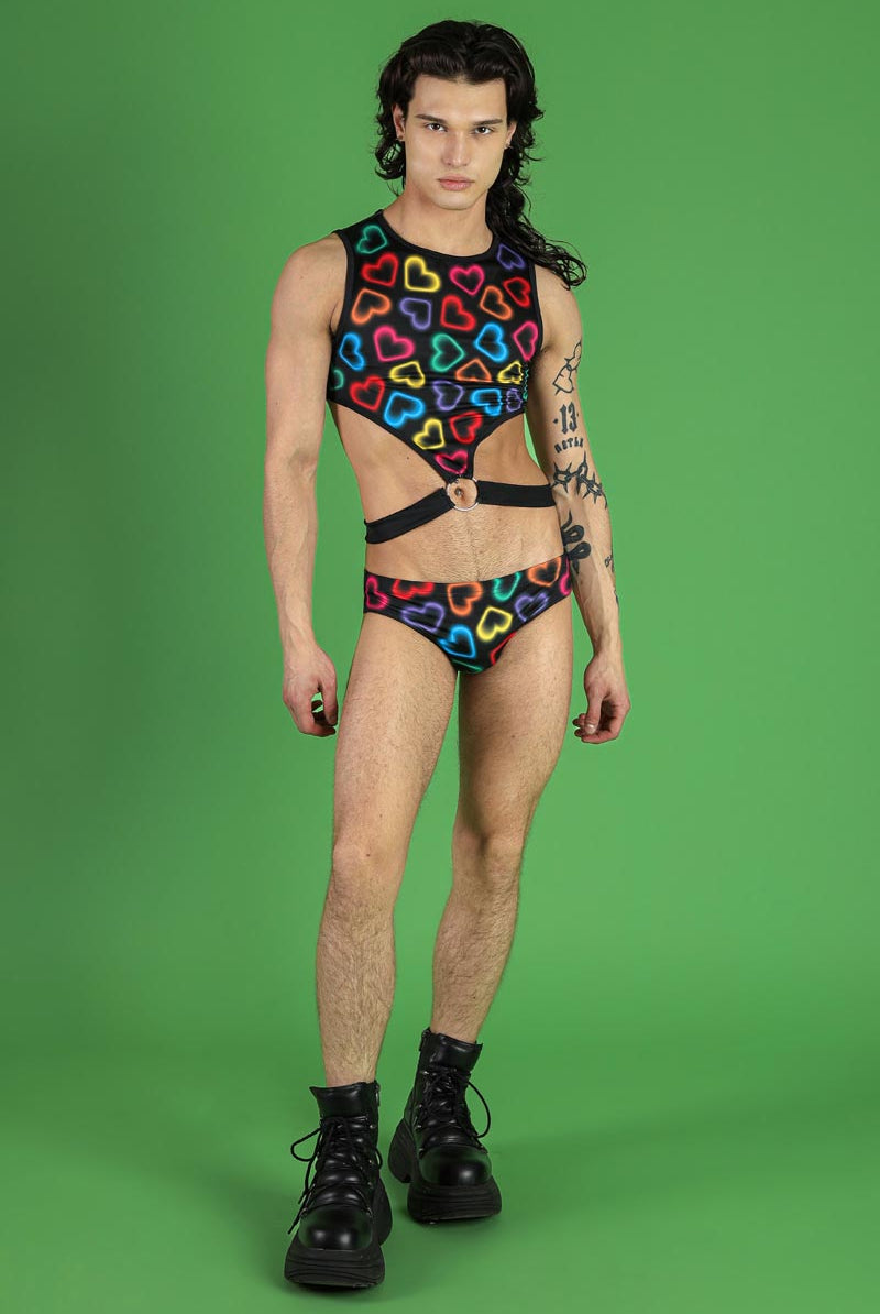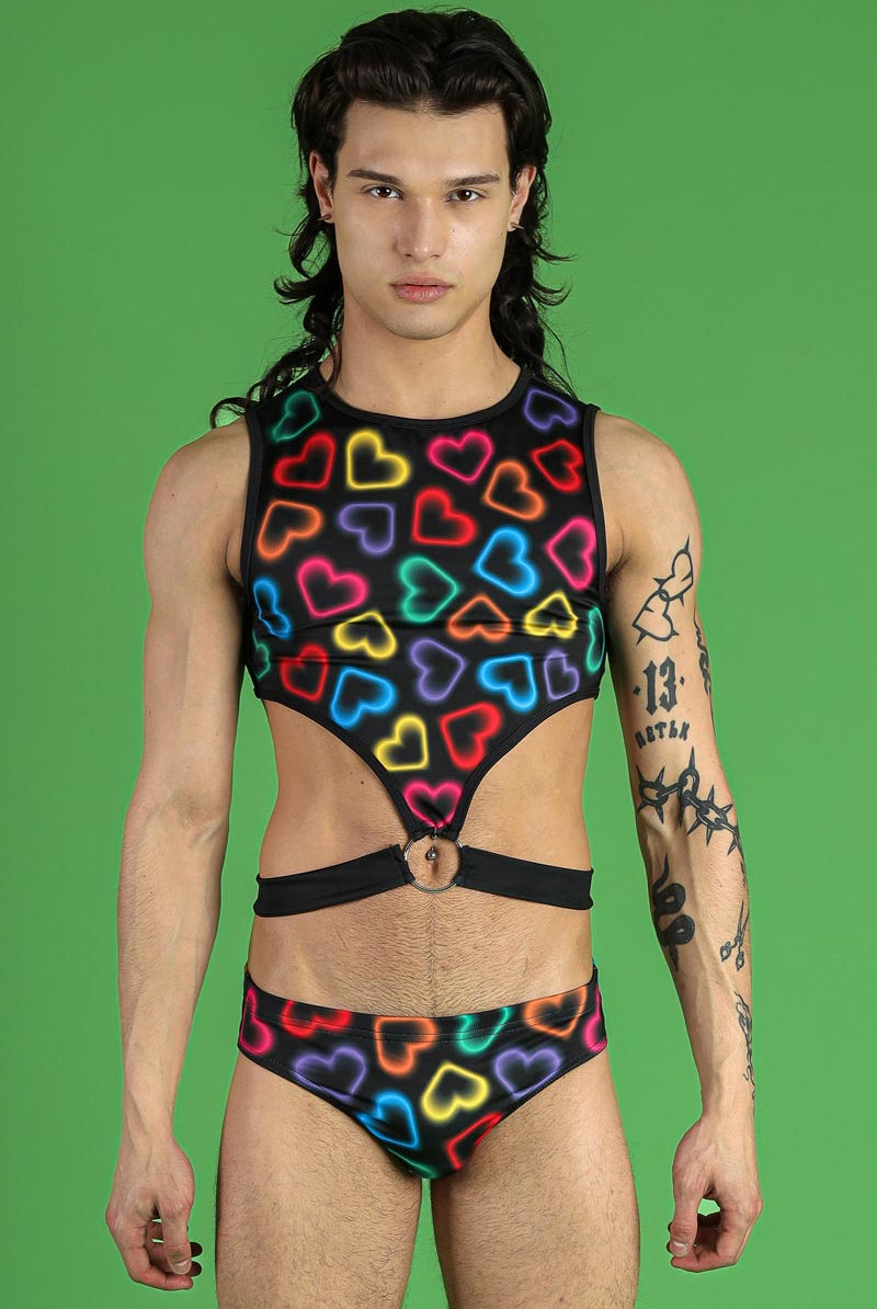 Neon Hearts Men's O-Ring Cut Out Crop Top