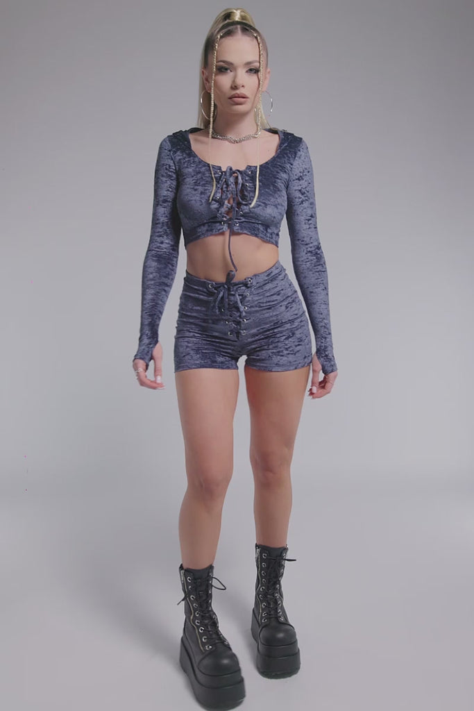 Nightshade Lace Up Shorts - Blue Velvet
