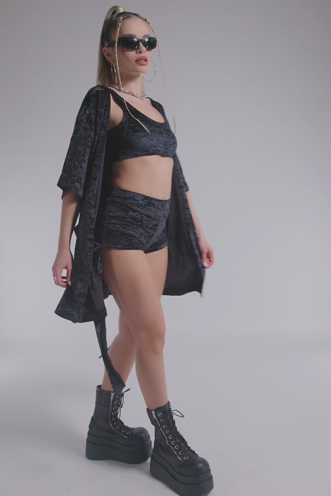 Embrace the luxe side of life in this black velvet robe. With its relaxed fit, it exudes effortless chic while enhancing your silhouette with a silky, smooth texture. The tie waist lets you adjust the fit, while the soft velvet adds comfort and elegance. Slip into this seductive piece and own your vibe!