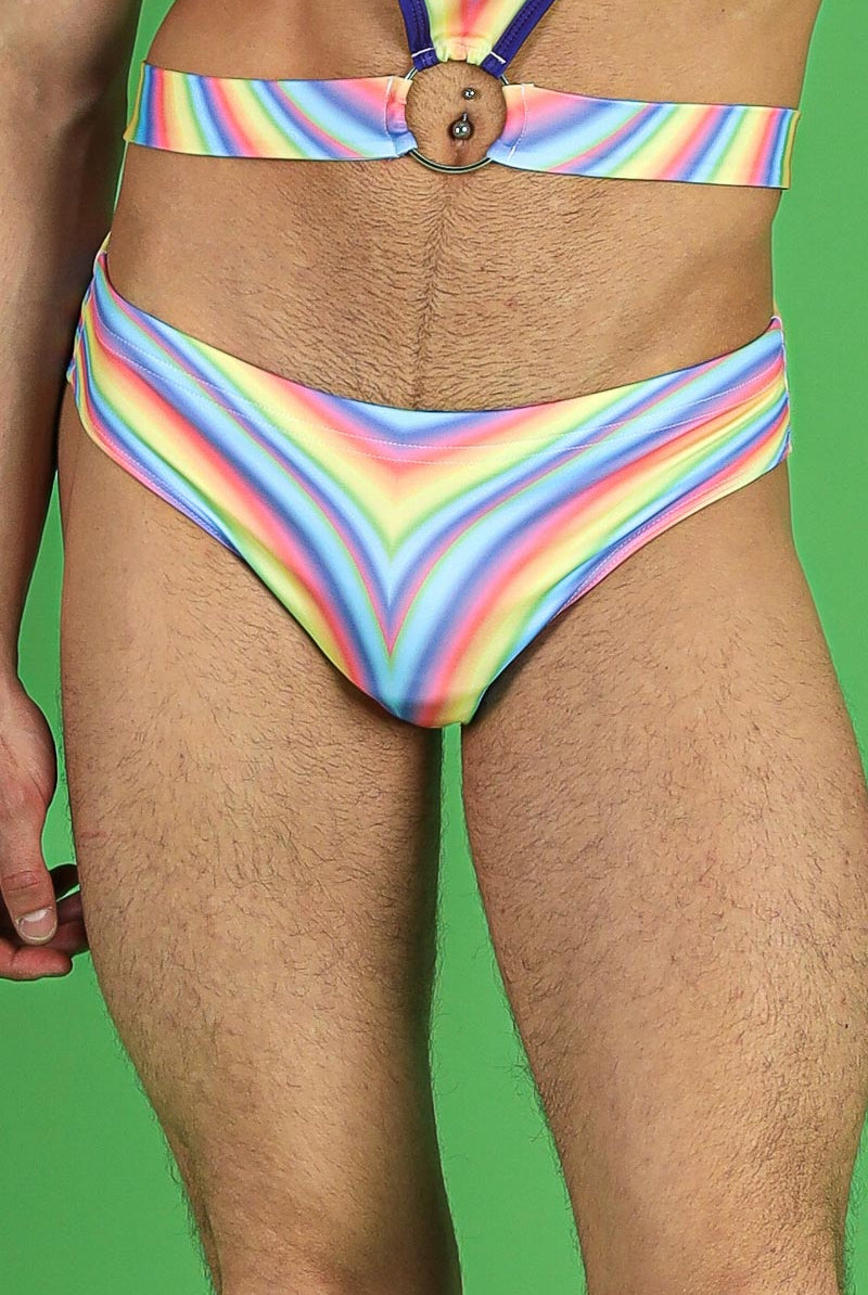 Add a pop of color to your collection with these men’s low-rise snug briefs. The sleek and comfortable design features the Pastel Vision print, characterized by its gentle blend of rainbow hues. These briefs provide a secure fit with a supportive waistband and are crafted from soft, stretchable fabric to ensure maximum comfort. Ideal for pride celebrations, raves, or as a bold everyday choice, these briefs combine style and functionality in one striking package.