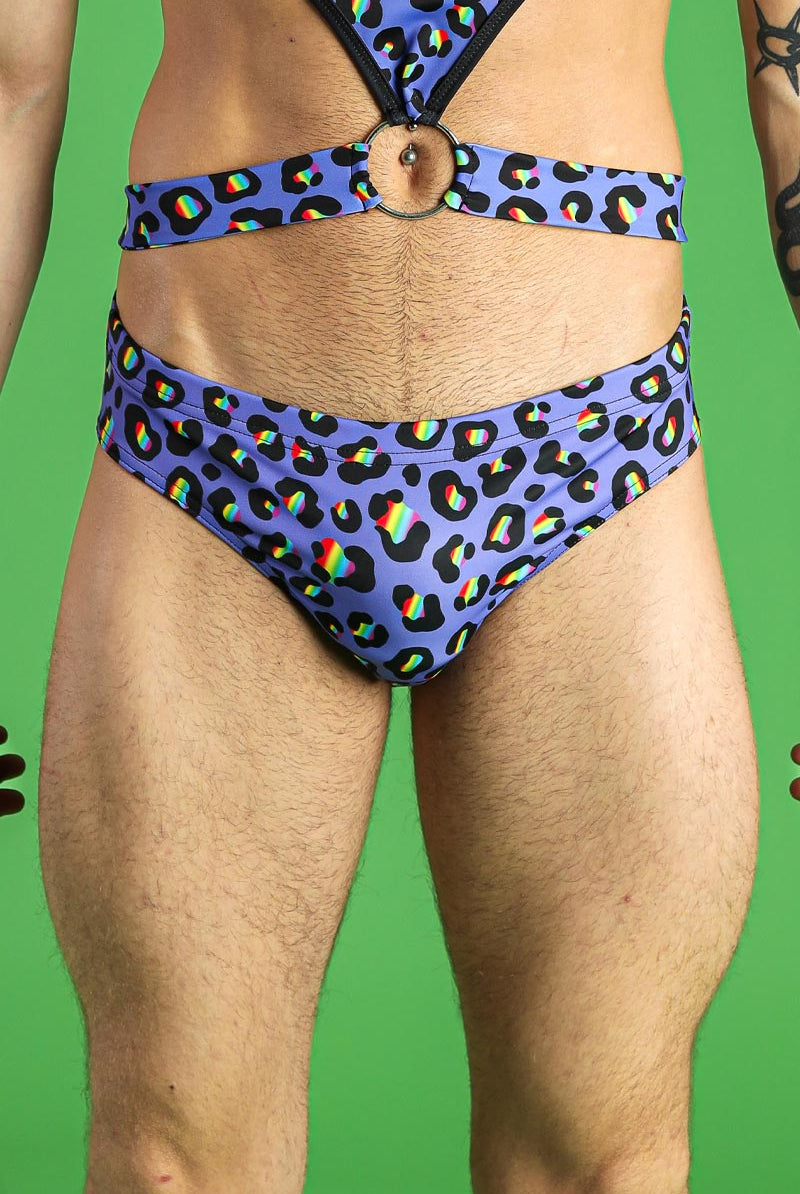 Elevate your festival and pride event look with these vibrant swim briefs. Featuring the Rainbow Spots pattern, these briefs showcase a striking leopard print in a spectrum of colors. The fabric is soft and stretchy, providing both comfort and style. Whether you're hitting the beach or the dance floor, these swim briefs will make sure you stand out in the crowd.