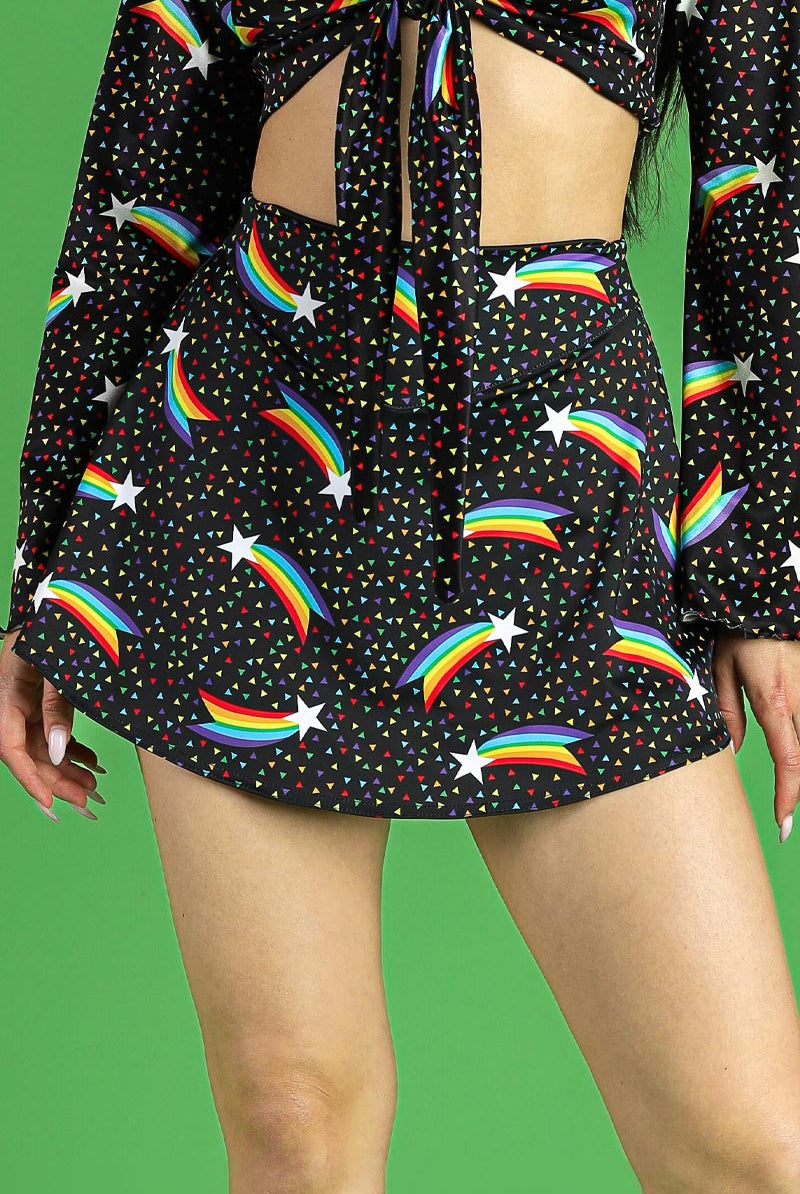 Rainbow Stardust High Waisted Skirt with Shorts
