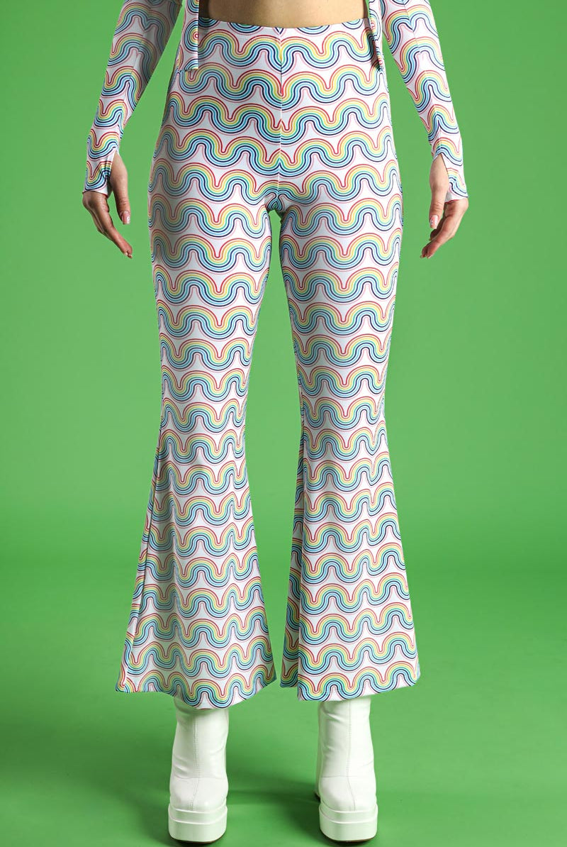 Rainbow Waves High-Waisted Bell Bottoms Pants