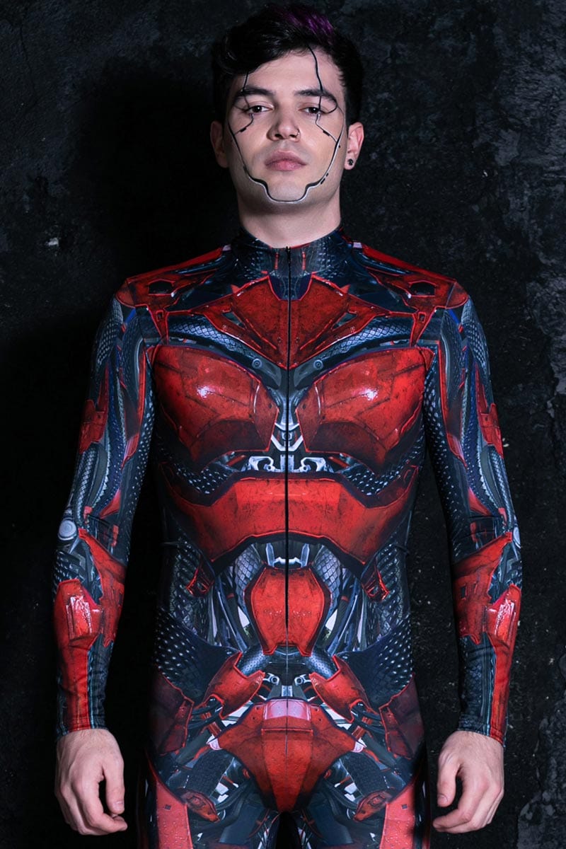 Essence becomes substance in this hardcore Robo-realistic costume, devised to mirror your inner mechanics out to the world! You can have all your superpowers implemented into one-piece supremacy - with a tight fit, a sensual look, and a daring cyber print of blood-red and steampunk grey. Is it time for you to play?