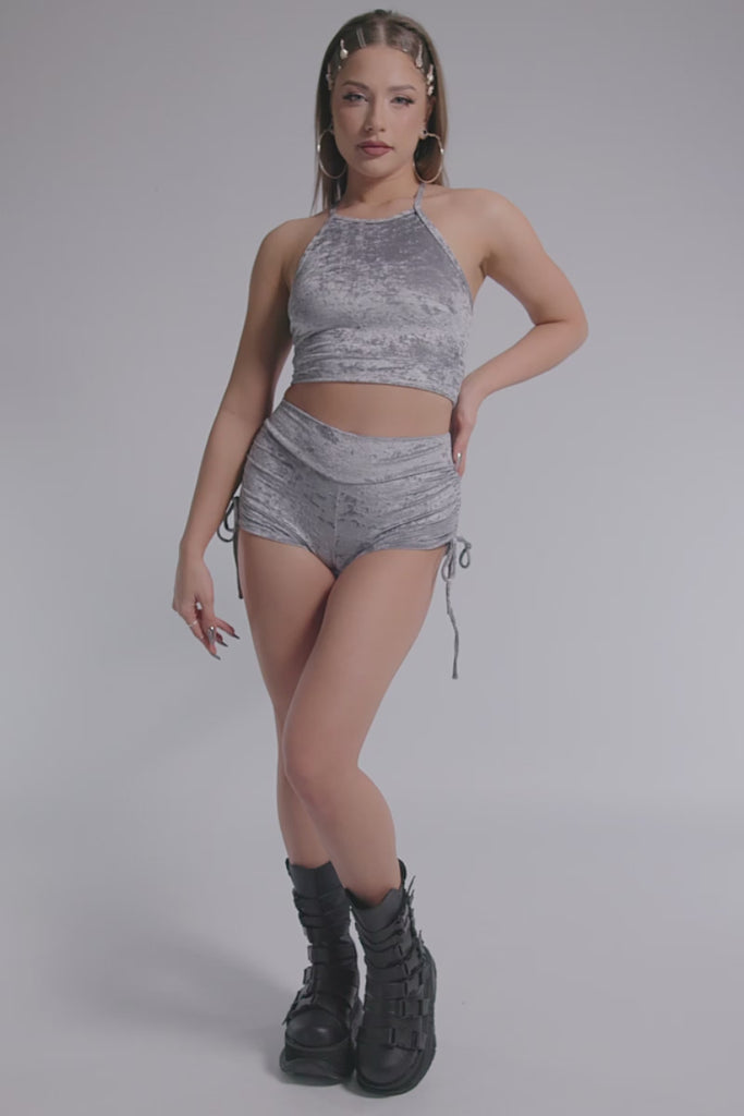 Silver Fox High Waisted Tie Side Shorts - Gray Velvet