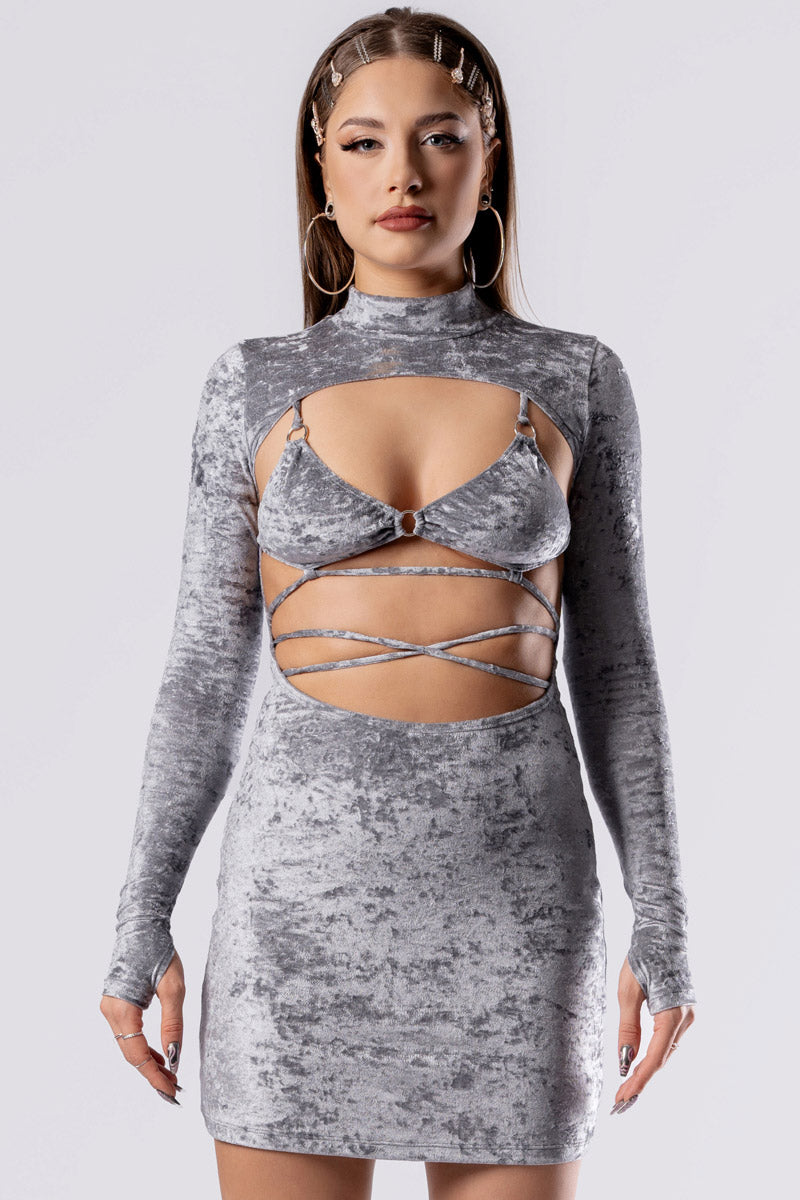 Turn heads and exude confidence in this velvet open front dress. Featuring a seductive triangle wrap-around bikini top paired with a long sleeve super crop top, this dress combines daring details with luxe velvet texture. The soft fabric ensures all-day comfort, while the bold design makes a statement. Own the night and show off your fearless style!