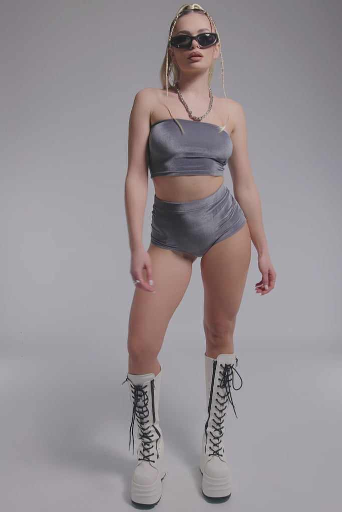 Turn heads and own your confidence with our seductive velvet booty shorts. Crafted for maximum comfort and a perfect fit, these shorts feature a high-rise waist and a flattering cut that hugs your curves. Own the moment and let your confidence shine through.