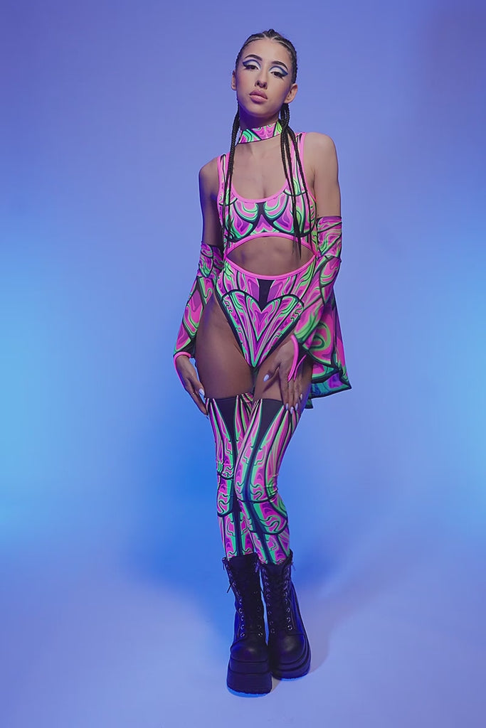 These butterfly wings transform your rave outfit into a full-on metamorphosis moment. With a vivid pink and green psychedelic pattern, they flow with every move—commanding attention on any festival dance floor. Bold, lightweight, and wildly expressive, they're made for the ones who never blend in. Spread your wings and slay.