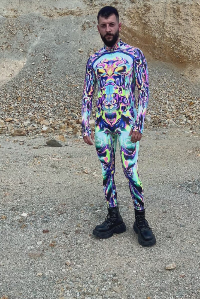 Unfasten ur seatbelt in this snazzy full-body rave costume, printed with hypnotic neons all over! It has a sexy form-fitting design, a gentle body-shaping layout, and the solidness u need to feel confident as u own the stage. Babe, u'll be all the rage!