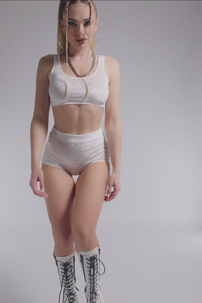 White Innocence Velvet Booty Shorts