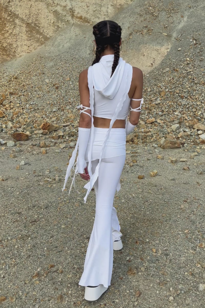 Turn heads with these unique lace-up pants. The low-waisted design is paired with an attached skirt, offering a layered, fashion-forward vibe. The lace-up sides add an edgy touch, while the wide-leg cut keeps it stylish and dramatic.